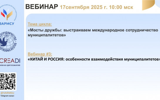 ВАРМСУ проведет пятый вебинар из цикла вебинаров «Мосты дружбы: выстраиваем международное сотрудничество муниципалитетов»